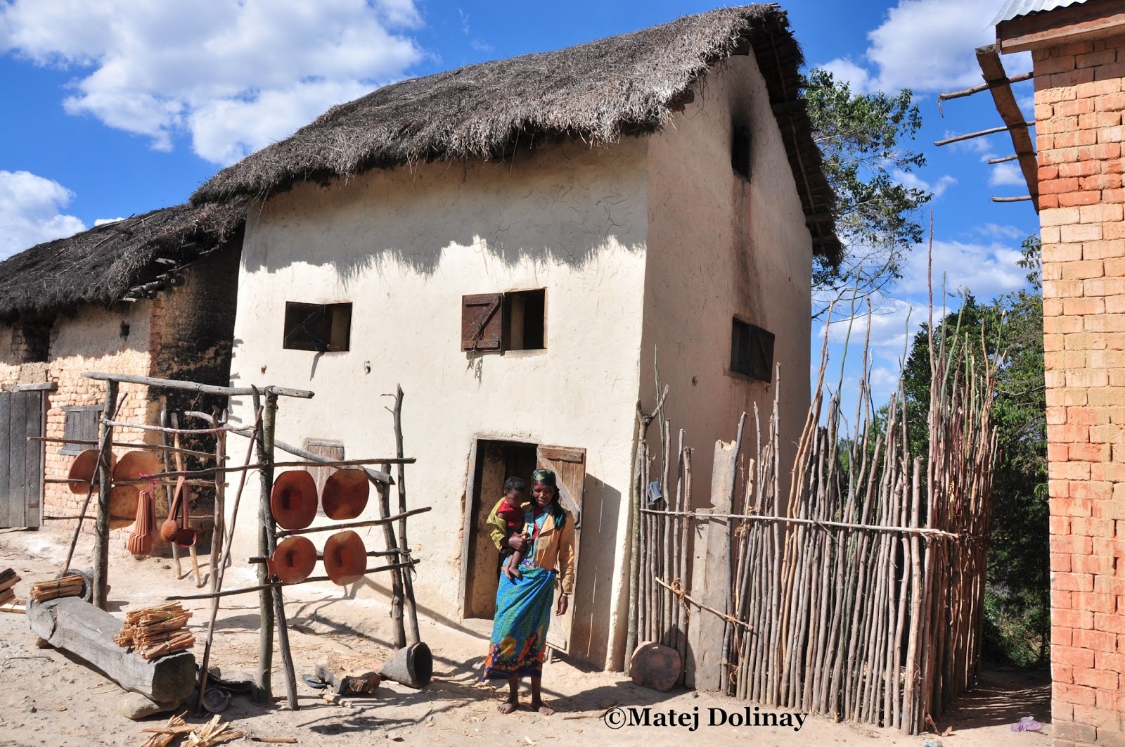 Krajina kolem byla suchá, protože zde nepršelo už hodně dlouho. Procházeli jsme kolem rýžových polí a míst, kde se vyráběly cihly z hlíny. Jsou nejdříve tvarovány, pak sušeny na slunci a nakonec páleny ve velikých pecích. Několikrát jsme potkali muže z kmene Bara, kteří putují se svými stády na veliké vzdálenosti. Už jsme se ale nacházeli na území kmene Betsileo, což je druhé nejbohatší etnikum ostrova po královském kmenu Merina žijícím severněji. Před polednem jsme zastavili u obydlí rodiny, která právě sušila rýži podél cesty. Gerard se zeptal místní paní, jestli by nás nevzala na návštěvu a ona souhlasila. Mohli jsme tedy nahlédnout do soukromí Malgašů a byl to opravdu prazvláštní zážitek. Dům měl dvě poschodí, v přízemí byla zvířata (viděl jsem jednu kachnu). Vstup byl malinký, protože Malgaši zdaleka nedorůstají rozměrů běžných pro lidi v Evropě. Nahoru se dalo vylézt jenom po tenkém a vratkém dřevěném žebříku. V prvním patře se v pokoji nacházela jenom jednoduchá postel a různé věci zavěšené na zdi. Úplně nahoře byla kuchyň a zároveň místo pro malé dítě. Životní úroveň je na ostrově velice nízká a Madagaskar patří mezi nejchudší země světa. Všude kolem byla spousta dětí, kterým jsme dávali bonbóny a tužky. Gerard se po celou cestu staral o to, aby si děti naše dárky spravedlivě rozdělily a bylo tomu tak i tentokrát.